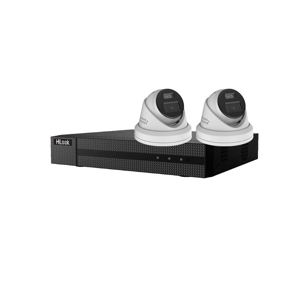This 2-camera starter kit pairs two CORE+ IPC-2120W-HT 12 megapixel turret cameras with the HiLook Pro Series HL-NVR-104MH-K-4P 4-channel PoE NVR, giving you a complete, high-resolution IP surveillance system that is straightforward to install and genuinely capable from day one. The combination is designed to work seamlessly together: connect each camera to one of the NVR's four built-in PoE ports, and the recorder discovers and adds them automatically. Power and video travel over a single Cat5e or Cat6 cable per camera, so there are no separate power supplies to wire in and no complex network configuration to deal with before you get your first live image on screen.
