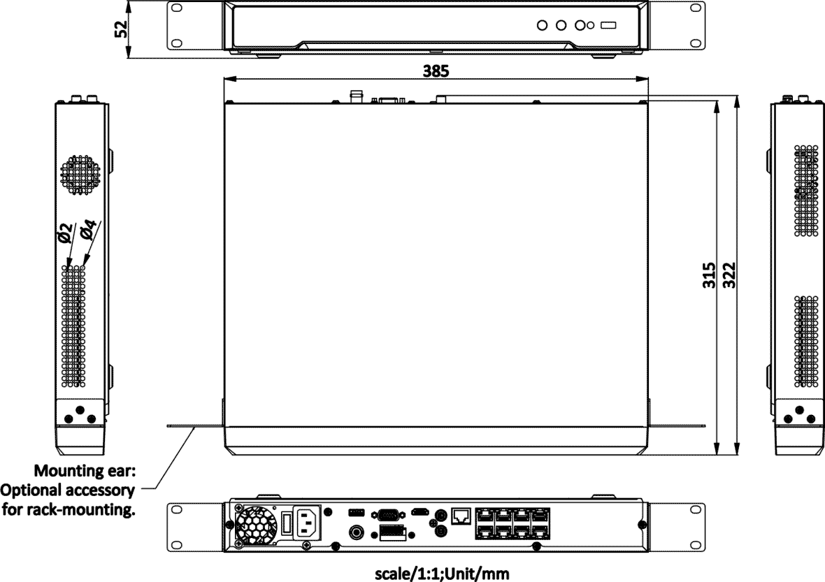 Decoding capability is equally impressive, with the unit able to handle 2-ch at 32 MP (30fps) combined with 2-ch at 8 MP (30fps), or up to 10-ch at 8 MP (30fps), 20-ch at 4 MP (30fps), or 40-ch at 1080p (30fps). Synchronous playback of all 8 channels simultaneously is supported, enabling operators to efficiently review multi-camera footage in investigations or routine monitoring. Dual-stream recording is also supported, allowing both a high-resolution main stream and a lower-bandwidth sub-stream to be recorded concurrently.